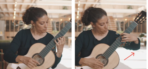 However in the Left Hand Technique course here by Gaelle Solal she has a picture in the pdf which is definitely not this- the left arm is almost horizontal!