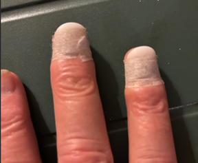 I have been in fingenail hell for the last month or so. I am currently trying Tiptonic Nails. I think they are a good system. The nails have small 'pockets' on either side that the corners of the nail fit in and use adhesive tabs to hold the nail in place. Unfortunately I have worn the left side corners on both 'm' and 'a' all the way down so there isn't much to hook in. So, in addition to adhesive, I tape the nails on with surgical tape. this, at least, allows me to practice but it is difficult to control tone and dynamics. I am hoping when my nails grow out a bit this will work much better.